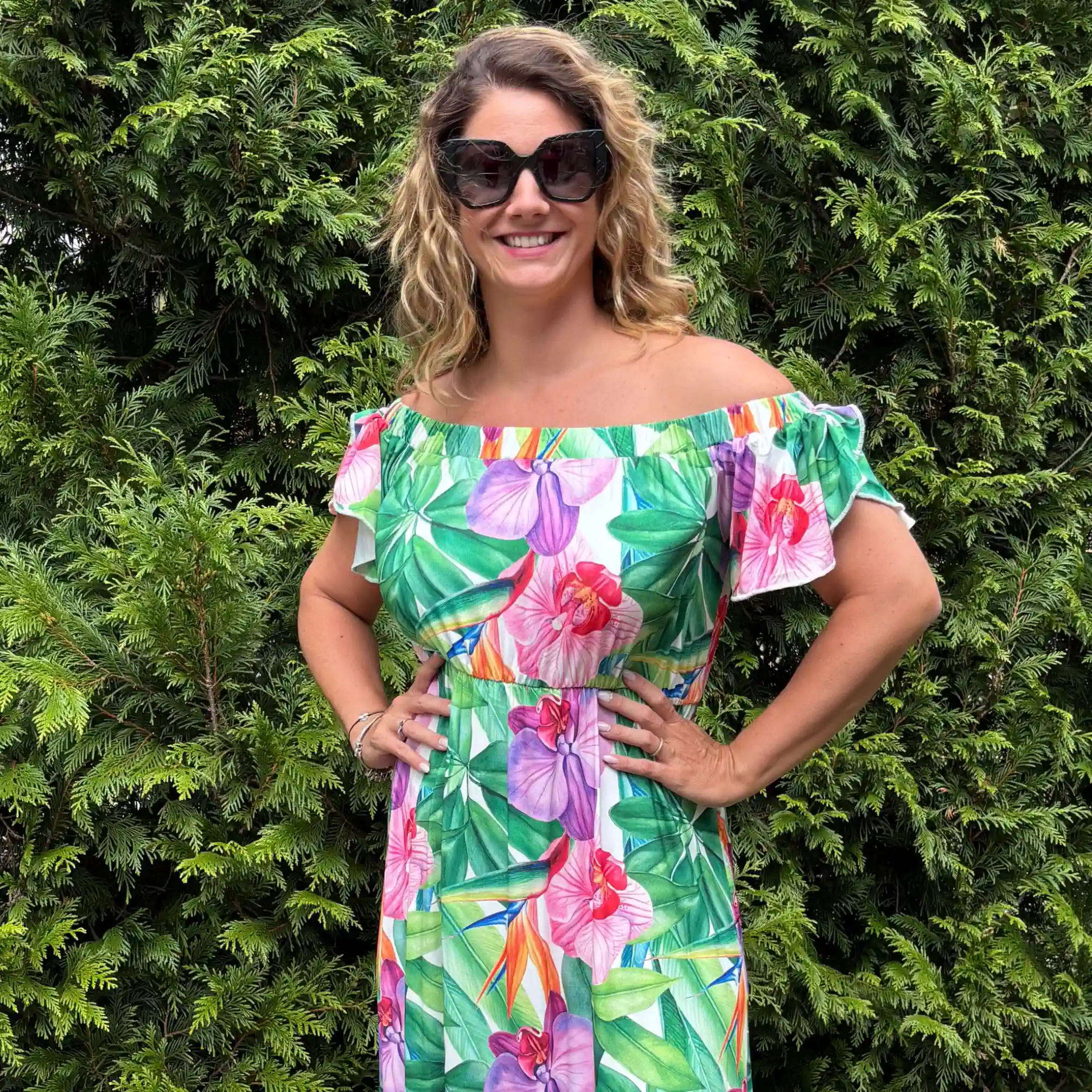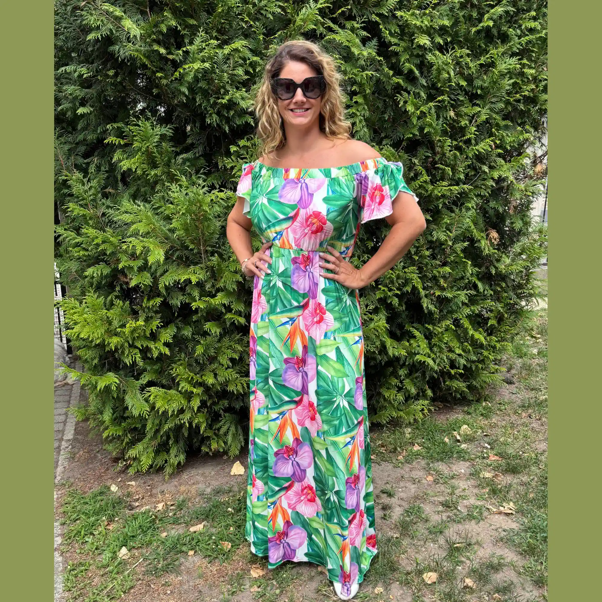 Nyári mintás maxi ruha a Beauty Fashiontől, fodros ujjal.